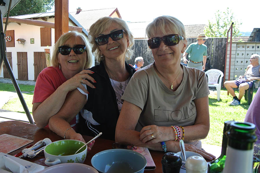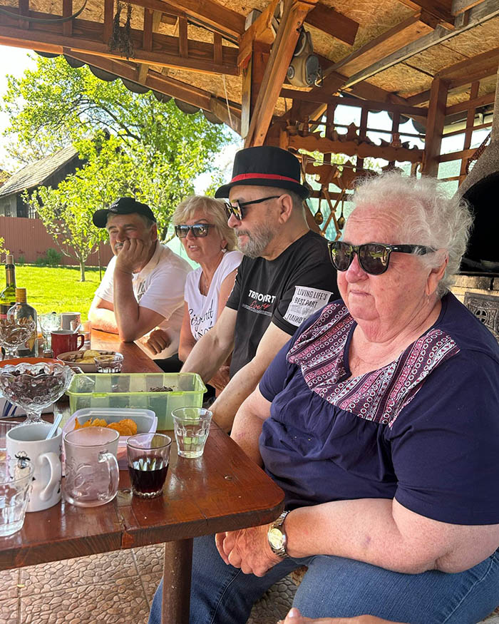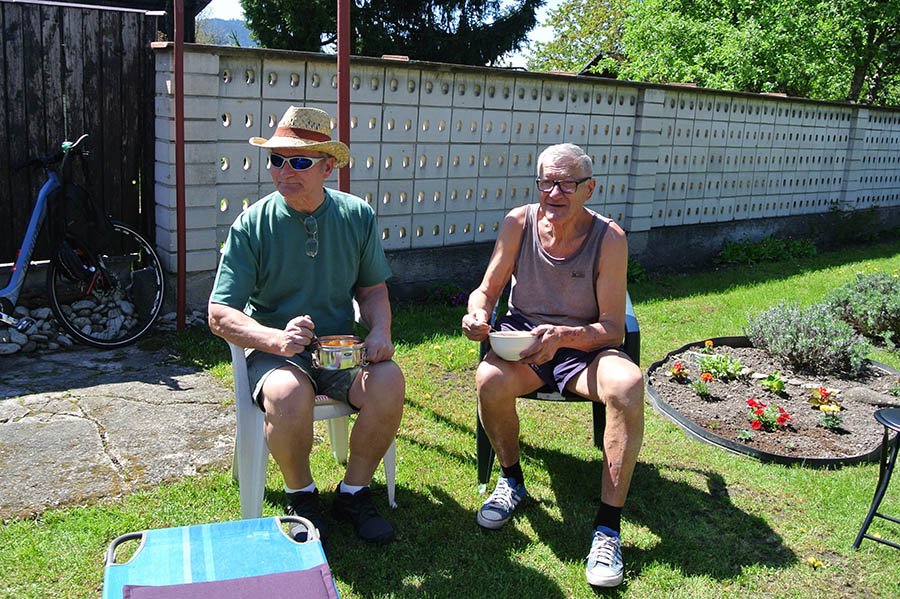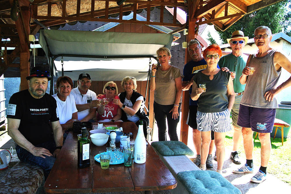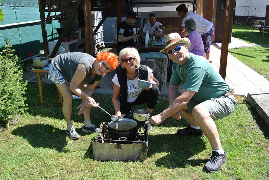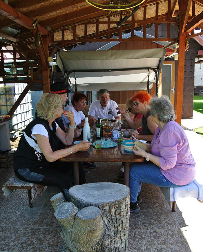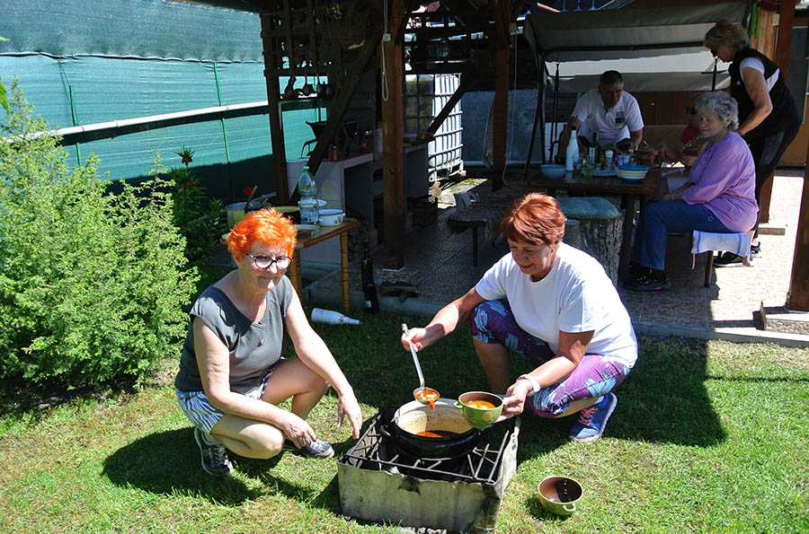 Súčasťou tohto stretnutia bolo aj družné posedenie v altánku, kde sa podával guláš, ktorý pripravil pán Štefan Macko a jeho pomocníčky /domáca pani Katka a Anka Pristašová/.