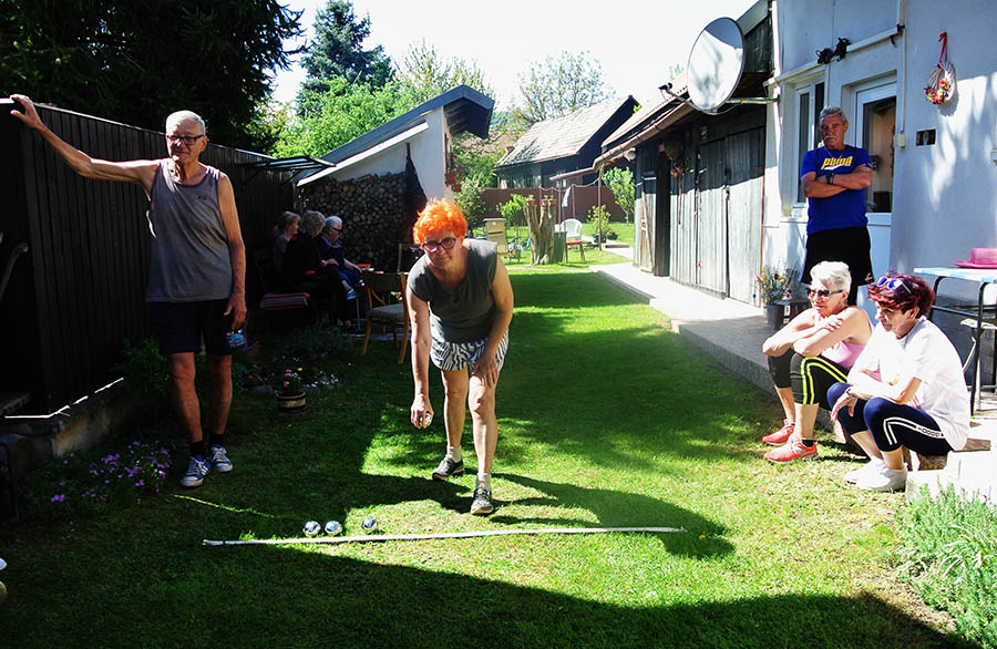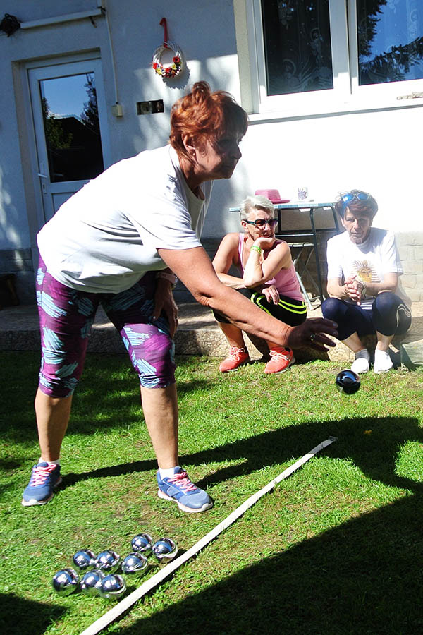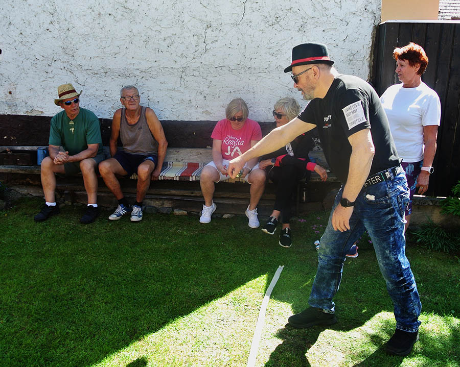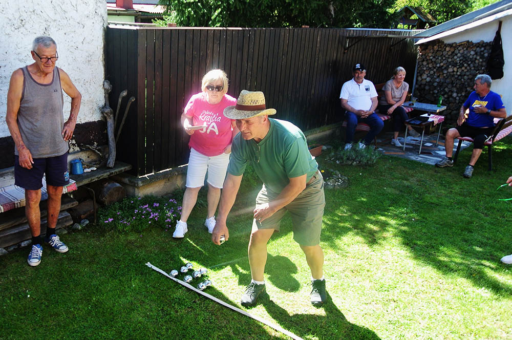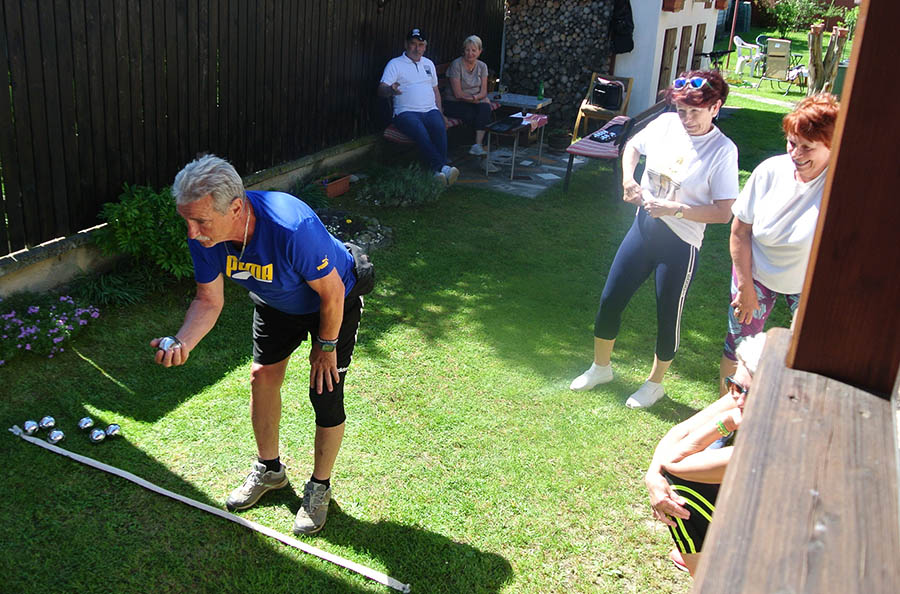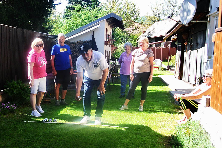 Krásne slnečné popoludnie strávili seniori ZO JDS Predajná v príjemnom prostredí rodinného domu Kataríny Vejmelkovej, kde si neformálne zasúťažili v petangu.