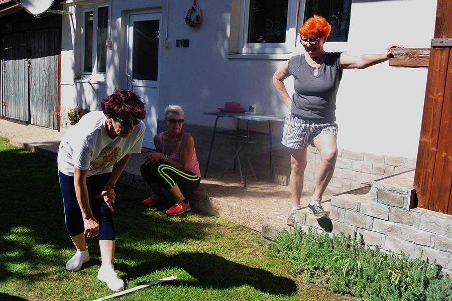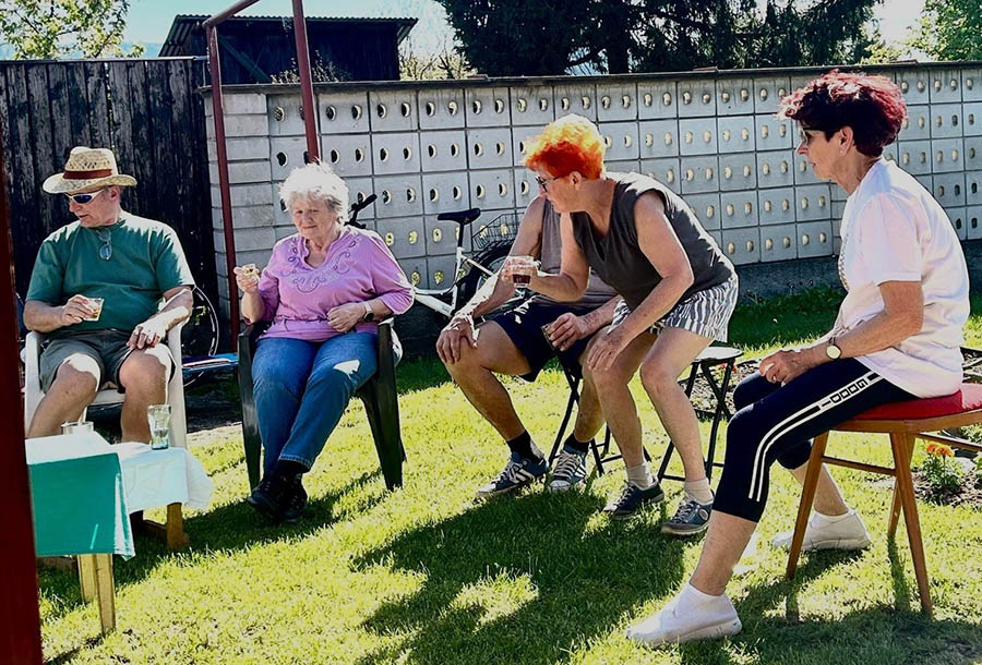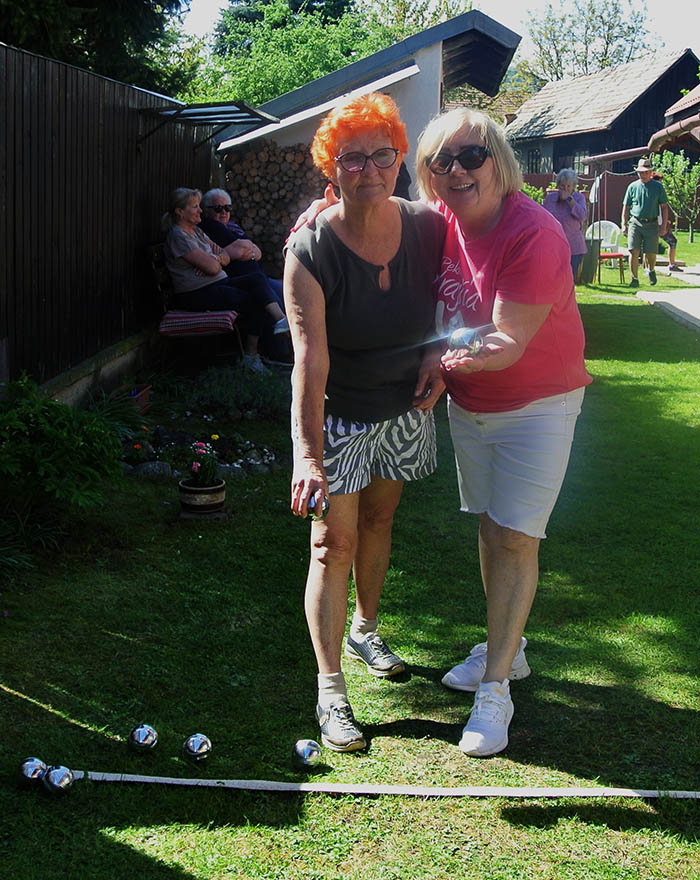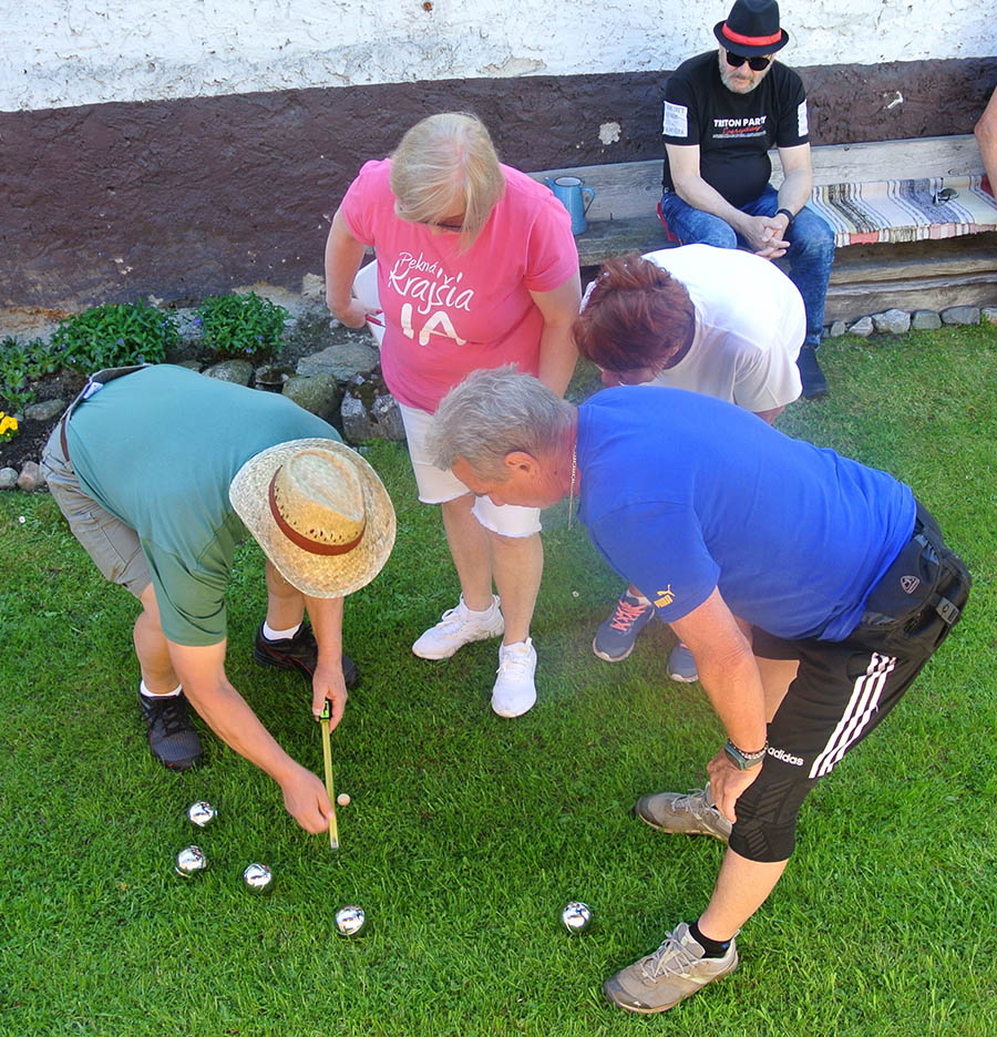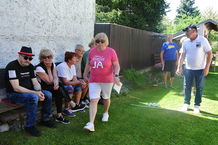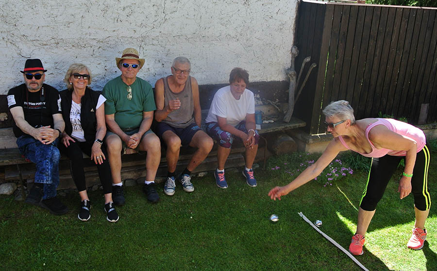 Krásne slnečné popoludnie strávili seniori ZO JDS Predajná v príjemnom prostredí rodinného domu Kataríny Vejmelkovej, kde si neformálne zasúťažili v petangu.