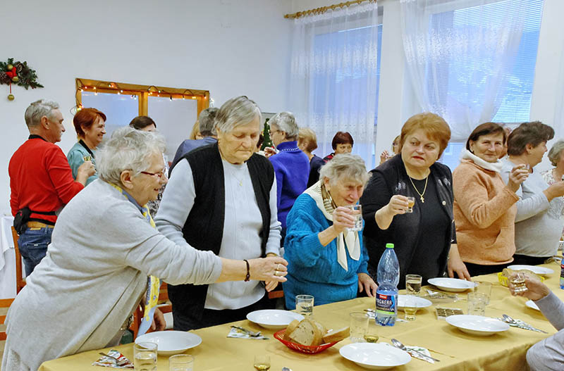 Vynikajúcu kapustnicu pripravili naši členovia Milan Pikula spolu s Annou Čunderlíkovou, Magdou Rečlovou, Martou Veselovskou, Ľubicou Pikulovou. Ihneď po privítaní a básni, ktorú predniesla Margita Beraxová sa spievalo do rytmu heligonkára p. Jána Krnáča a atmosféra až do konca akcie bola výborná. Dobrá nálada gradovala až do neskorých večerných hodín. O pesničky do tanca sa nám postaral p. Michal Schvarzbacher.