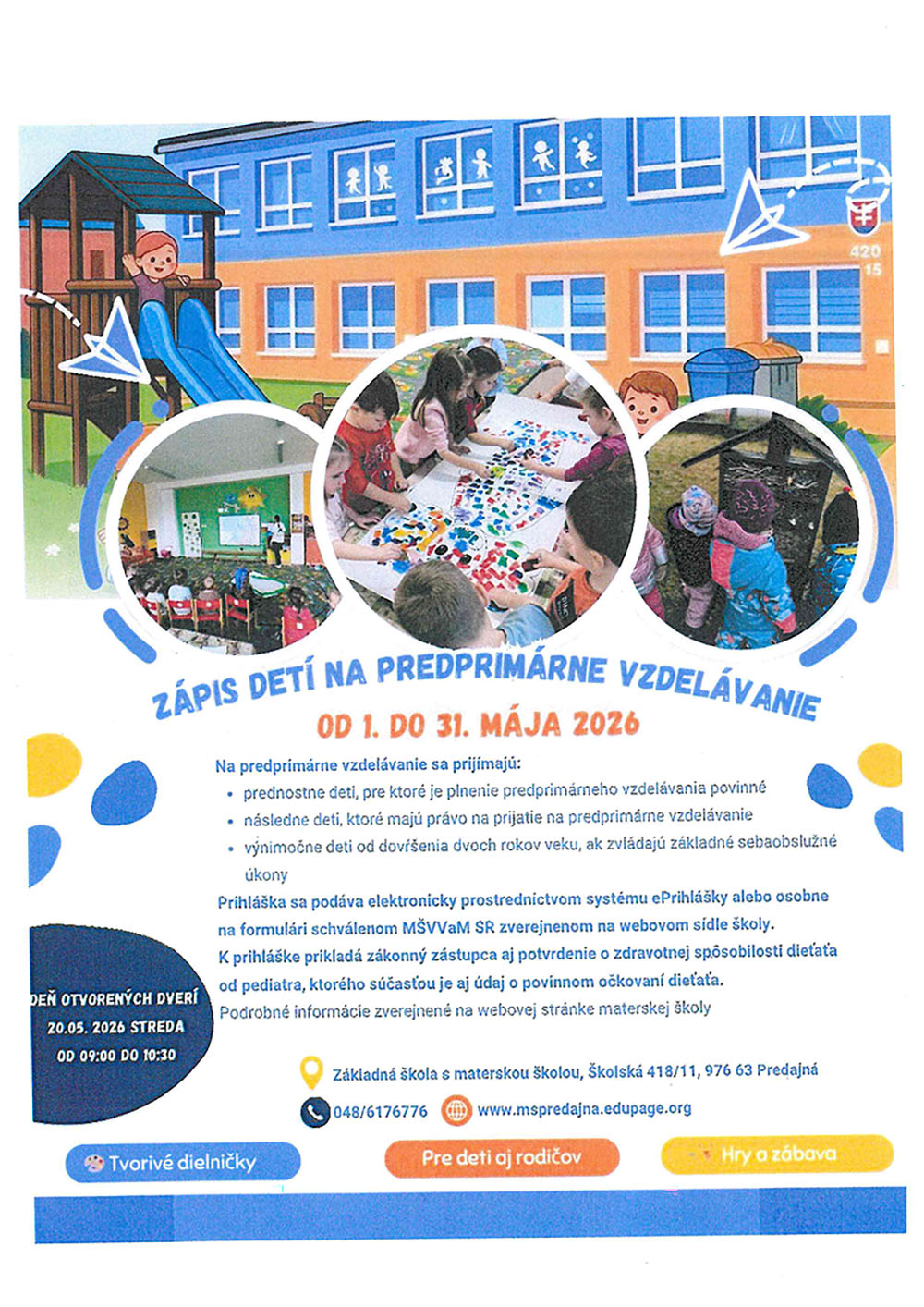 Zápis detí na predprimárne vzdelávanie od 1. – 31. 5. 2026