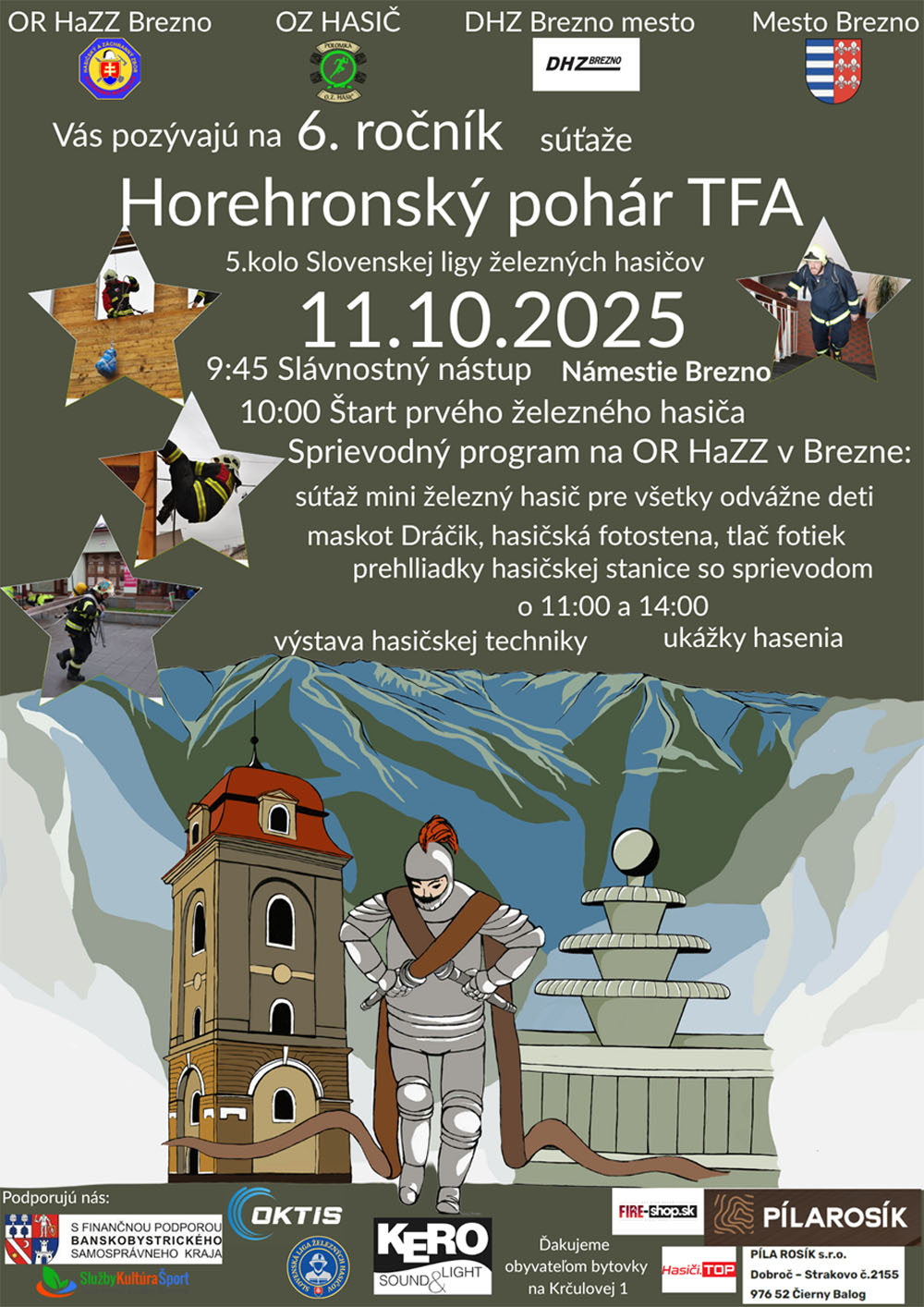 5. kolo Slovenskej ligy železných hasičov a Deň otvorených dverí na OR HaZZ v Brezne 11. 10. 2025 – na námestí M.R. Štefánika v Brezne