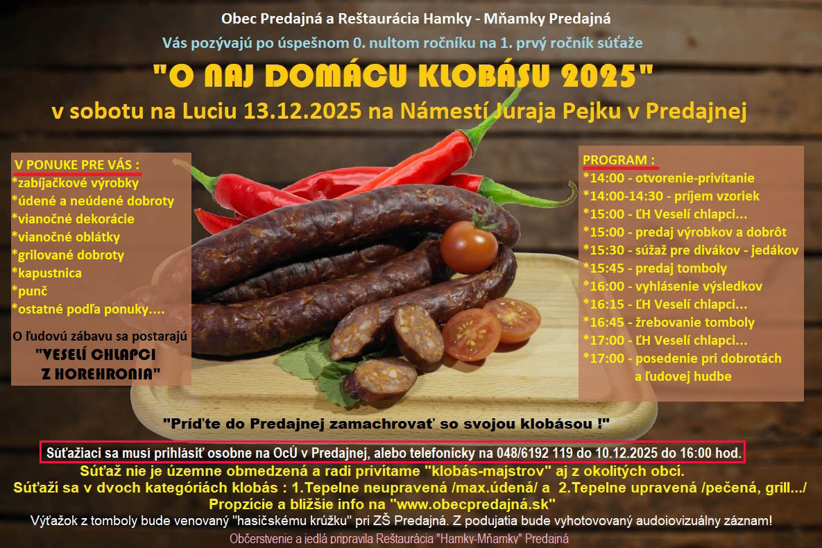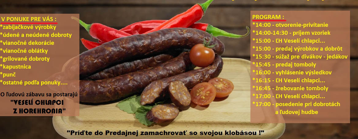 PROPOZÍCIE: Deň domácej klobásy“ a súťaž o „Naj klobásu 2025“    PREDAJNÁ 2025